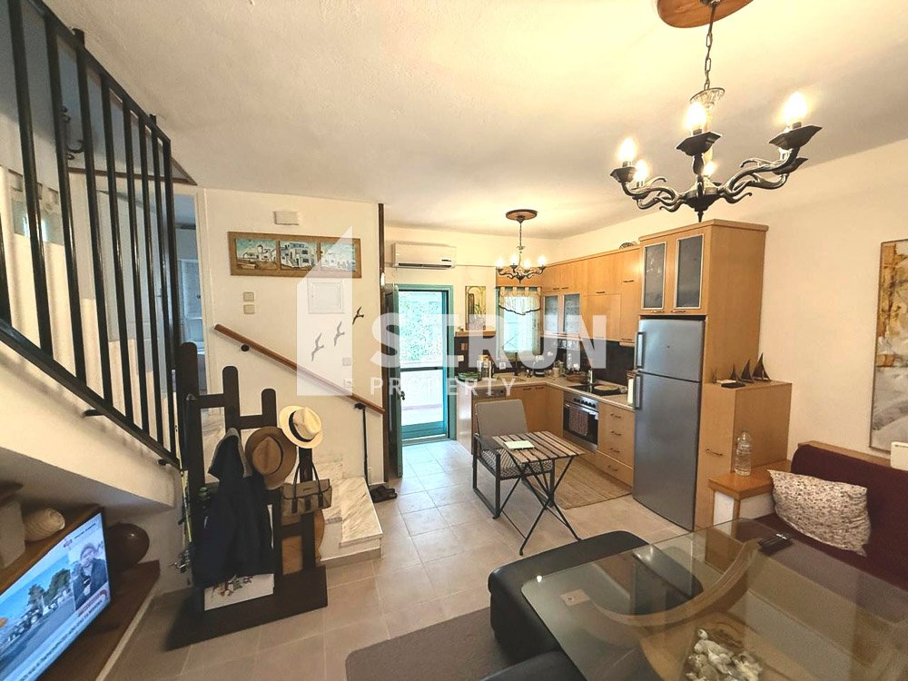 In Toroni 120 m from the sandy, equipped beach with crystal blue waters, in a complex, a 2-level maisonette is for sale together with an independent studio with a total area of ​​97,25 m².