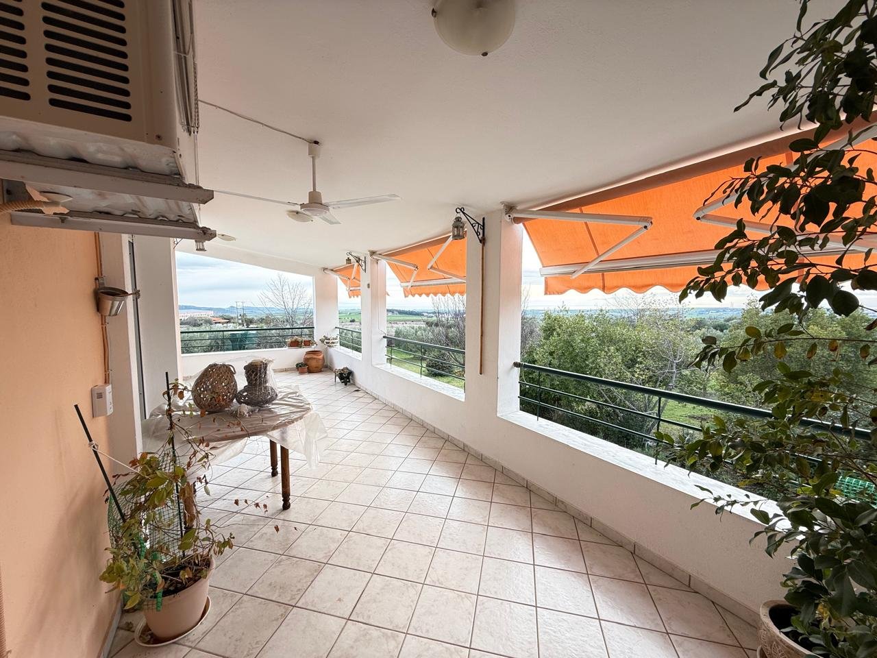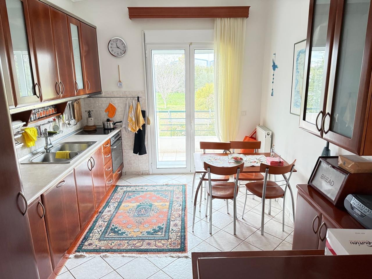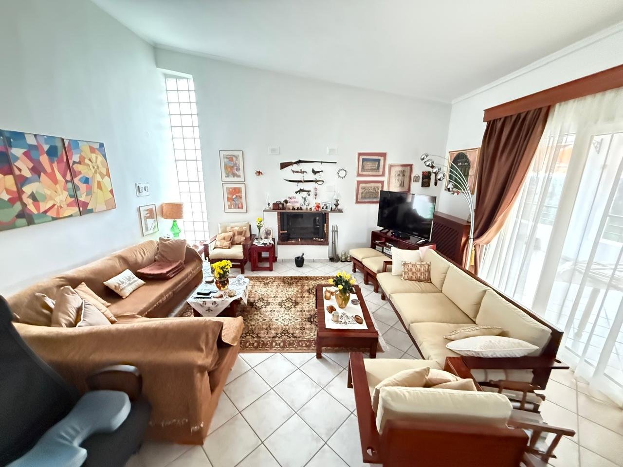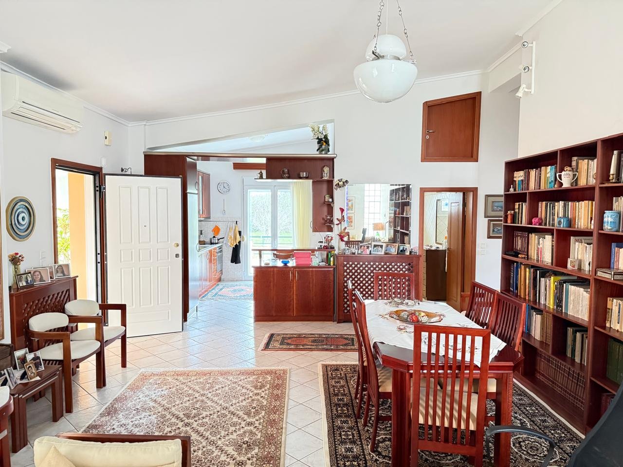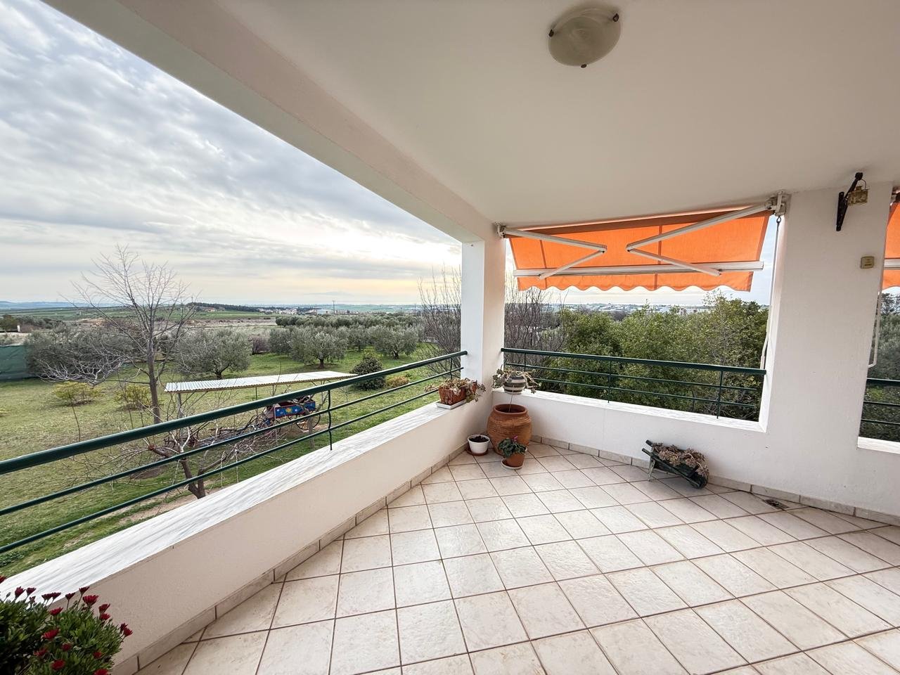 1ος όροφος – 125 τμ: μεγάλο σαλόνι με τραπεζαρία και τζάκι, κουζίνα, 3 υπνοδωμάτια (το ένα τύπου master με δικό του μπάνιο), 1 μπάνιο και βεράντα με όμορφη θέα στη θάλασσα και τον Όλυμπο