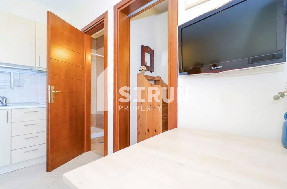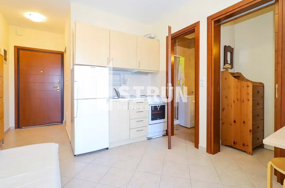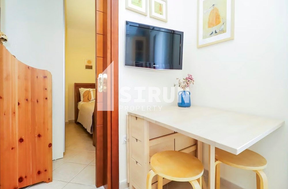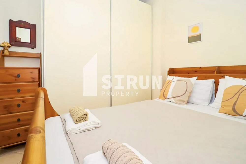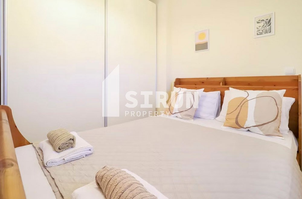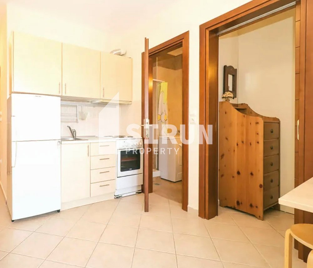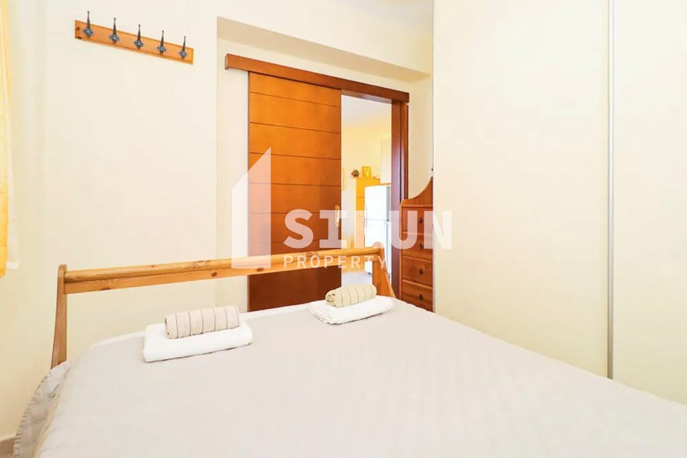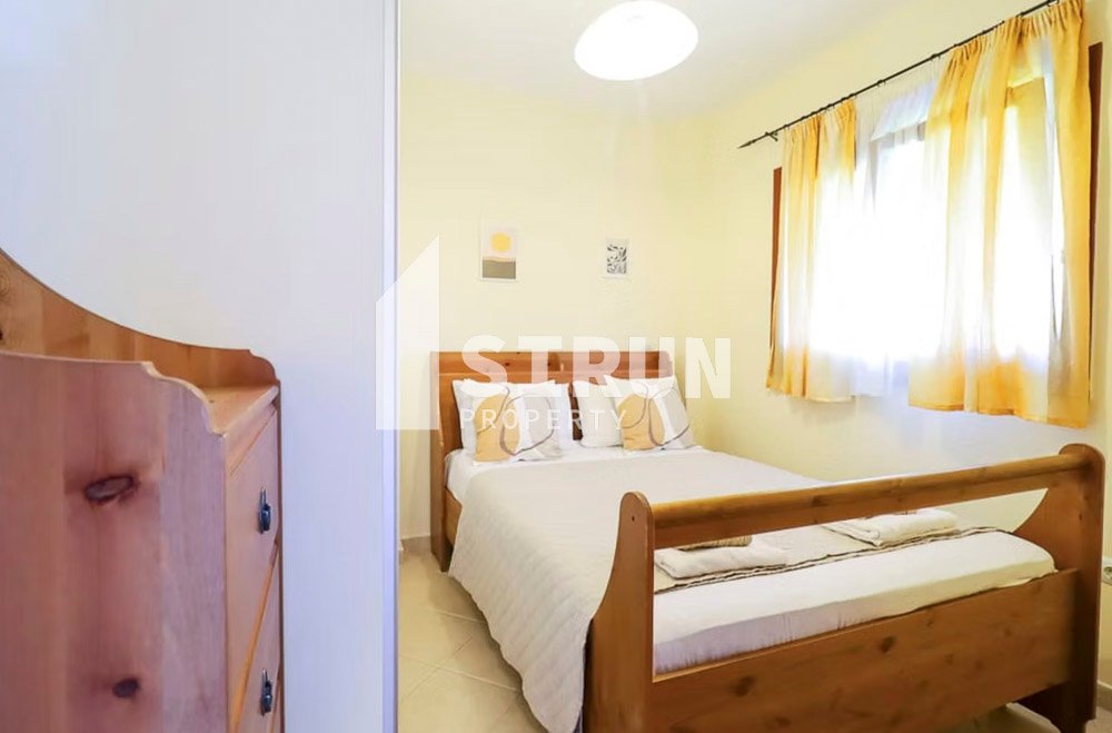Το διαμέρισμα βρίσκεται στον 1ο όροφο, είναι επιπλωμένο και εξοπλισμένο με ηλεκτρικές συσκευές και αποτελείται από 1 υπνοδωμάτιο, επιπλέον χώρο ύπνου, ενιαίο χώρο σαλοκουζίνας, 1 μπάνιο και βεράντα.