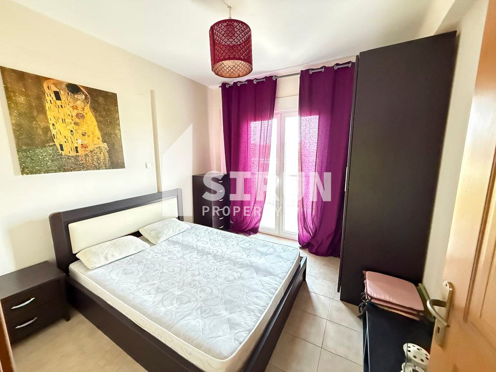 Το διαμέρισμα είναι στο 2ο όροφο, έχει εξαιρετική διαρρύθμιση και αποτελείται από σαλοκουζίνα με πρόσβαση στην μπροστινή βεράντα και σε μπαλκόνι, 2 άνετα υπνοδωμάτια με ξεχωριστά μπαλκόνια και 1 μπάνιο.