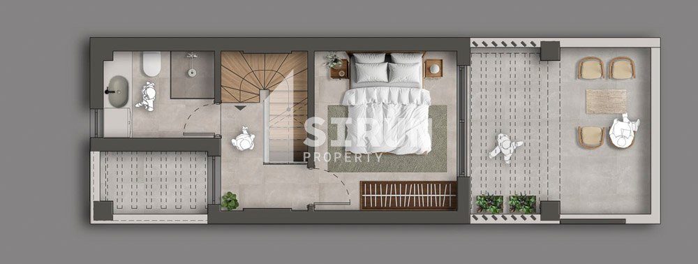 Этаж мансарды: 1 спальная комната с верандой с видом на море и 1 ванная комната.